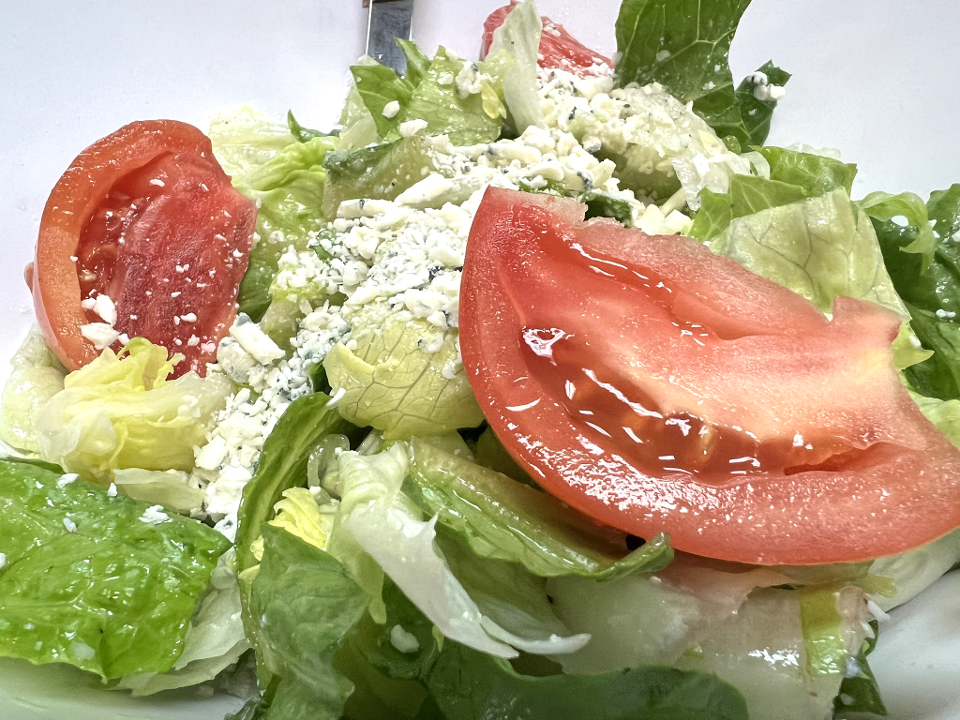 Chopped Romaine and Iceberg lettuce with ripe tomato wedges tossed in our signature Italian dressing and premium grated Gorgonzola cheese (dressing & Gorgonzola are on the side for items to-go)