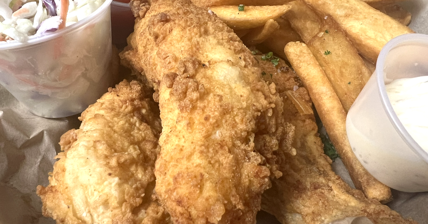 Fresh breaded and fried Icelandic Cod, served with cole slaw, tartar sauce and your choice of side (usually fries)