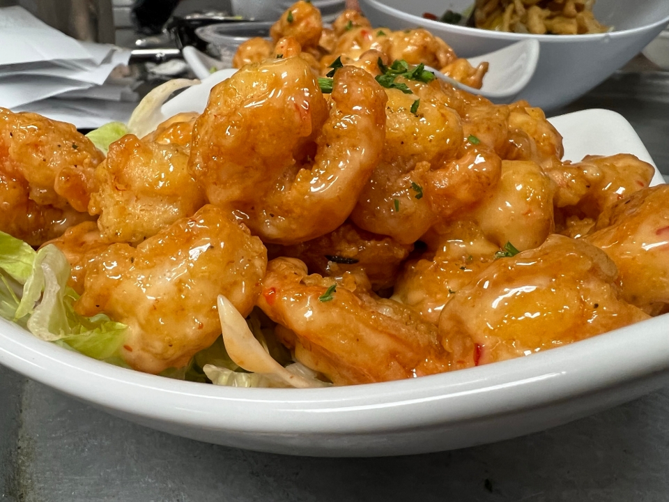 Tiny breaded fried shrimp in our homemade sweet & spicy bam sauce, served on a bed of lettuce (sauce is on the side for to-go orders)
