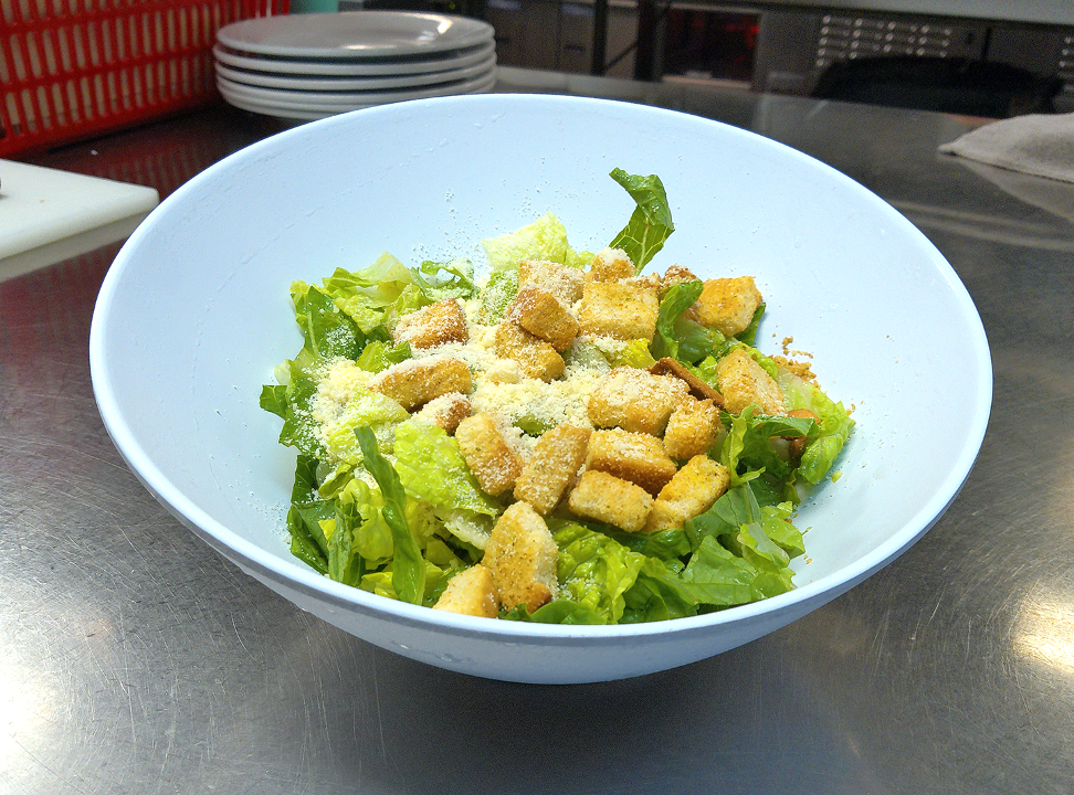 Fresh, crisp Romaine tossed in our homemade Caesar dressing with croutons and Parmesan (dressing is on the side for all salads to-go)