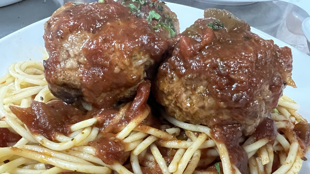Three large all-beef meatballs served on top of spaghetti with our house marinara sauce and parmesan cheese on the side