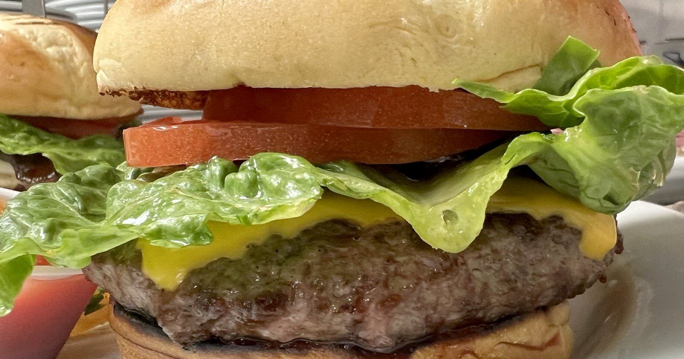 Half-pound Angus burger with American cheese, served with lettuce & tomato and fries (or other side dish).